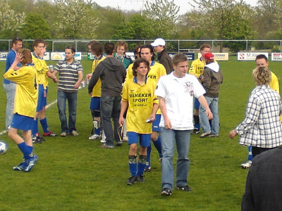 Vanzelfsprekend moet Wim Wold even bij de spelers op de schouders.